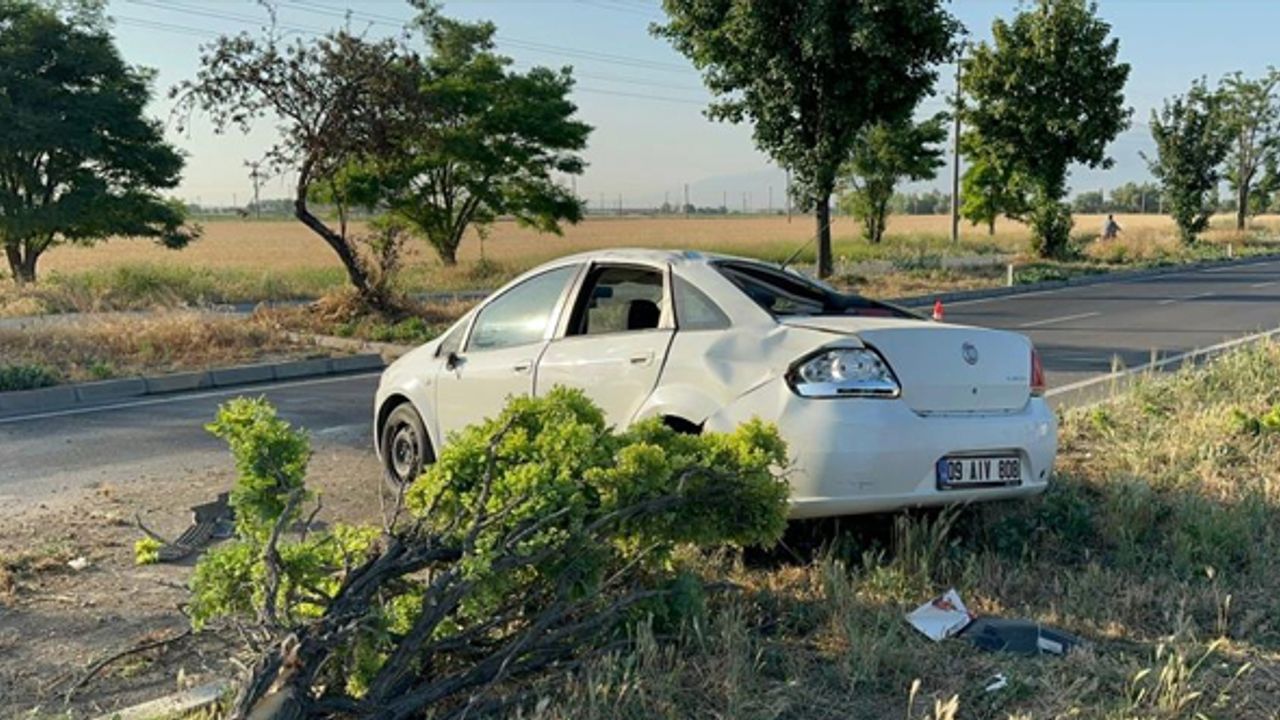 Afyonkarahisar’da kontrolden çıkarak orta refüje girip ardından ağaçları devirerek durabilen otomobilde 2 kişi yaralandı.