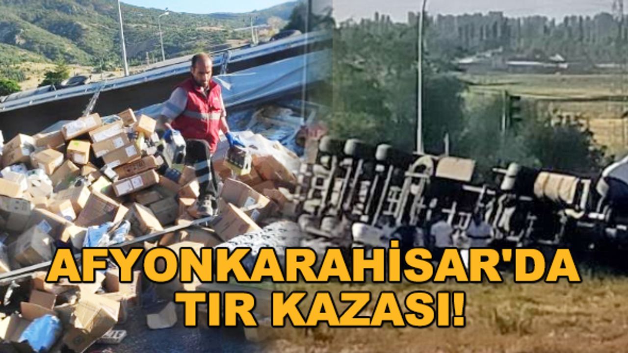 Afyonkarahisar’da kontrolden çıkan boya yüklü TIR kırmızı ışıkta bekleyen otomobile çarptıktan sonra yol ortasındaki rerüje devrildi.