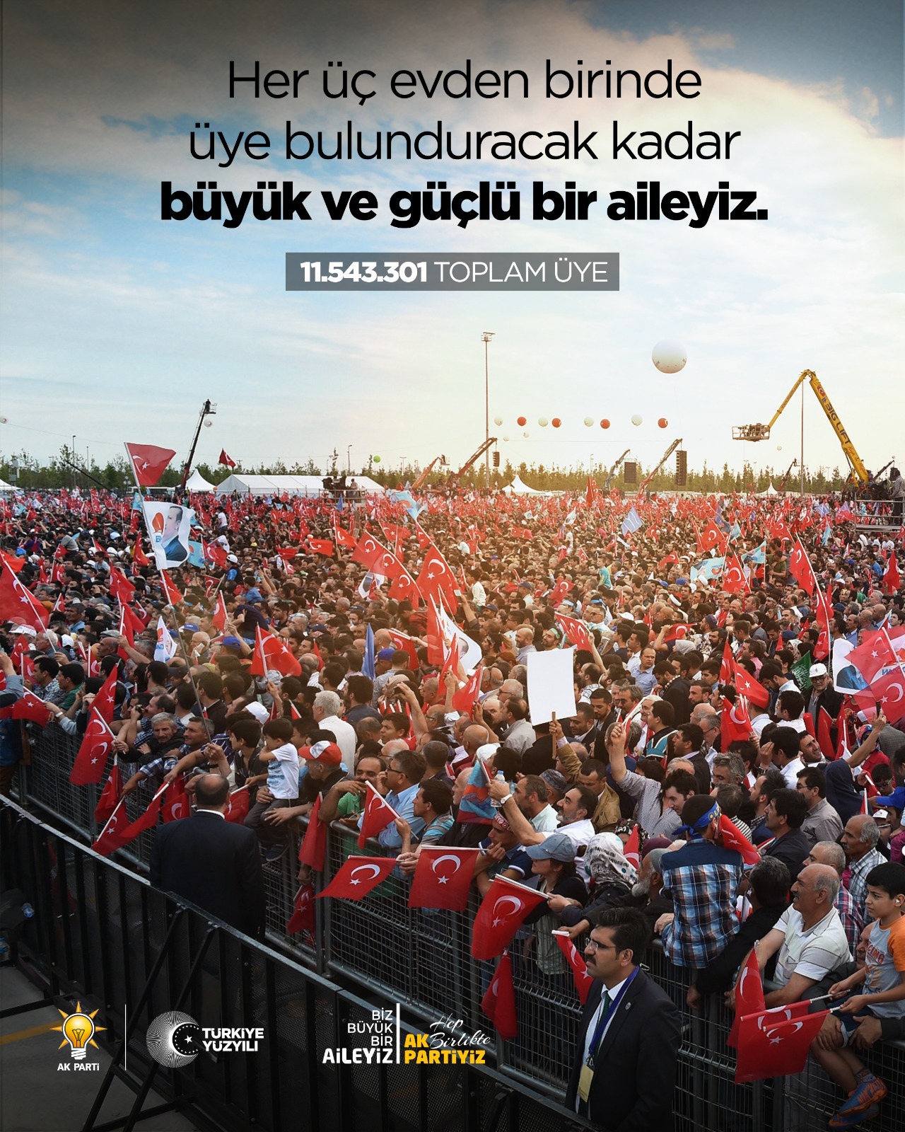 “11,5 milyonluk güçlü teşkilat yapısıyla Türkiye’nin en büyük siyasi hareketiyiz” ifadesiyle, partinin ulaştığı tarihi seviyeyi net biçimde ortaya koyarken, “Biz büyük bir aileyiz” mesajı AK Parti’nin birlik, beraberlik ve dava ruhunu vurguluyor.
