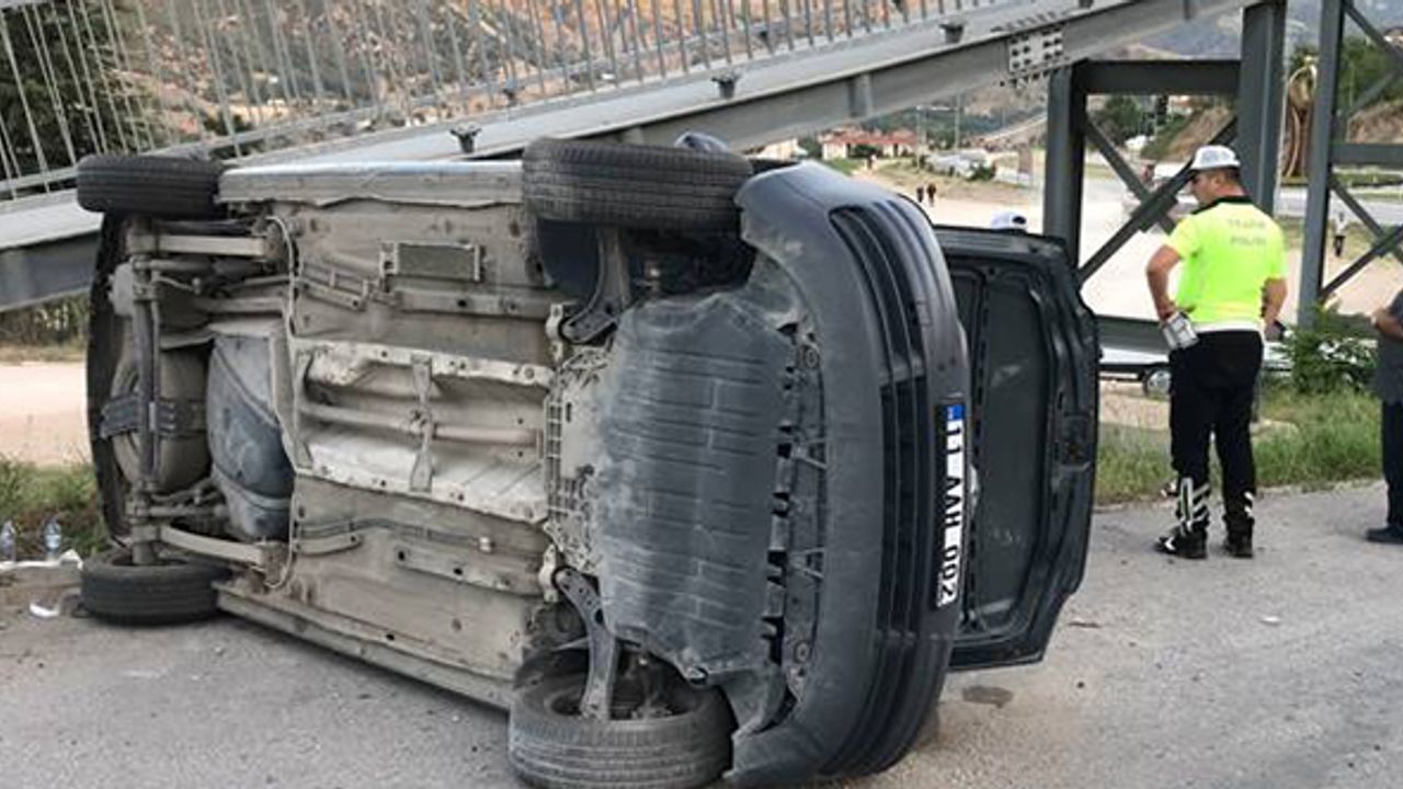 İstasyon Mahallesi'nden kent merkezi yönüne seyreden Ahmet G. yönetimindeki araç, TOKİ Kavşağı mevkisinde kontrolden çıkarak üst geçidin ayağına çarpıp devrildi.