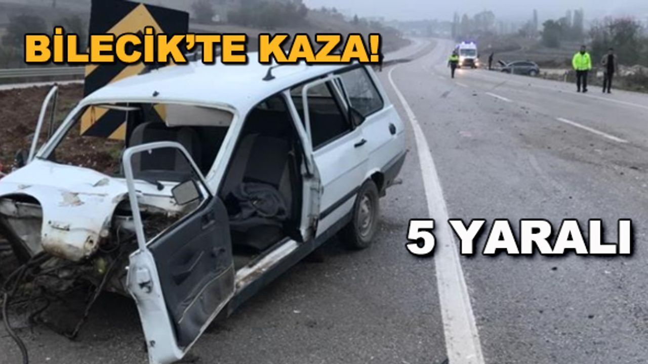 Bilecik'te iki otomobilin çarpıştığı kazada 5 kişi yaralandı. İki otomobilin de kullanılamaz hale geldiği kazada, araçlardan birinin ön kısmı 15 metre fırladı.