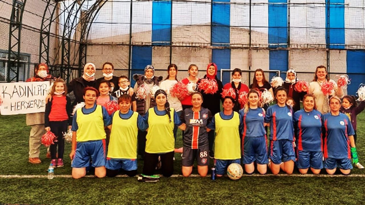 Renkli görüntülere sahne olan kadınların futbol maçını takip eden çok sayıda kadın taraftar da karşılaşma boyunca takımlarını desteklediler.
