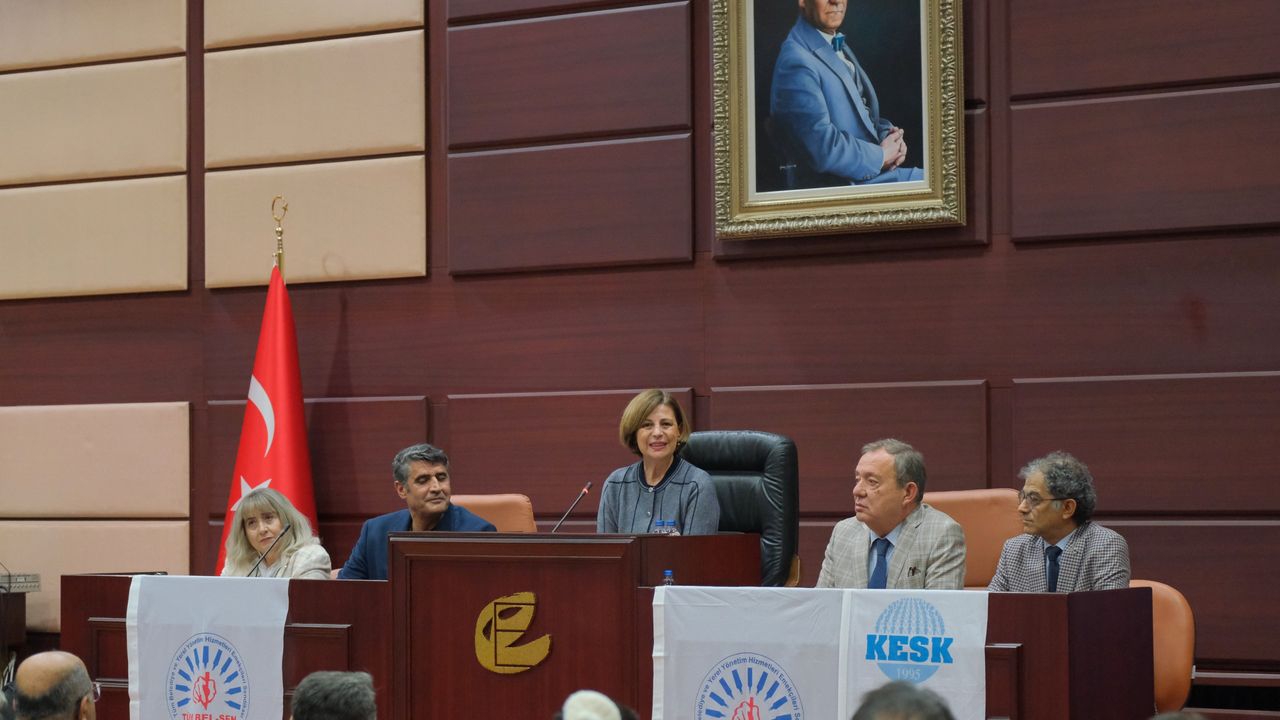 Konuşmaların ardından Eskişehir Büyükşehir Belediye Başkanı Ayşe Ünlüce ile TÜM BEL-SEN Genel Sekreteri İzzettin Alpergin, Sosyal Denge Tazminatı Sözleşmesi’ni imzaladı.