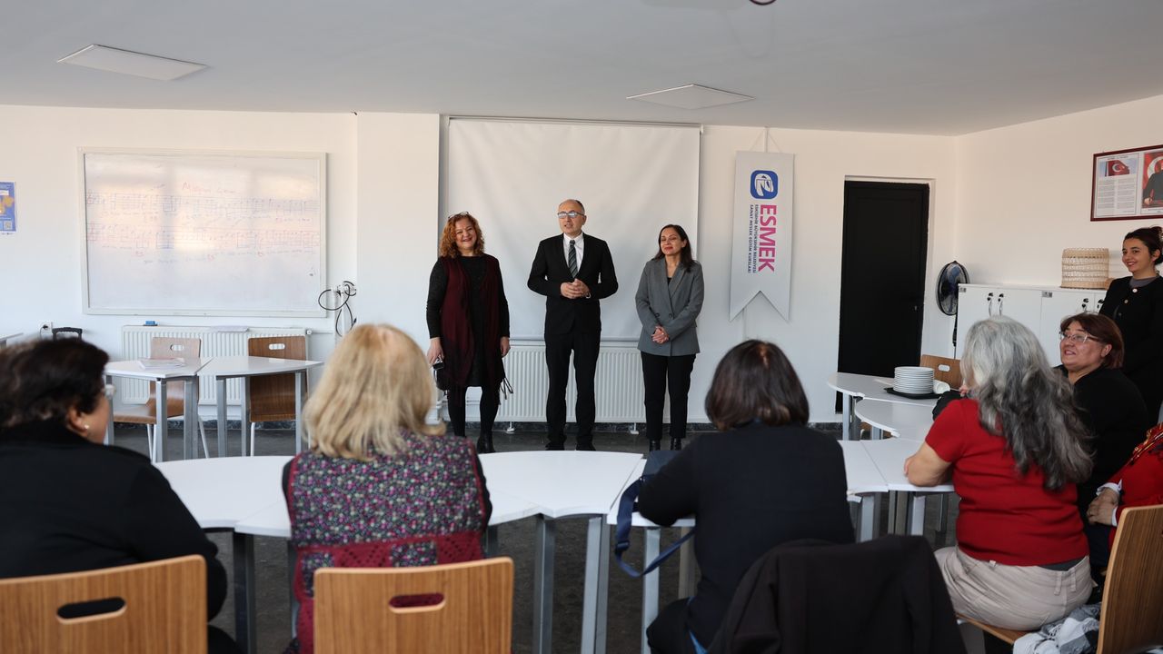 Atölyelerin sona ermesinin ardından Sosyal Hizmetler Dairesi Başkanı Selim Öztop ve Kadın Çalışmaları Şube Müdür V. Özge Ören Sağdıçın katılımıyla sertifika töreni düzenlendi.