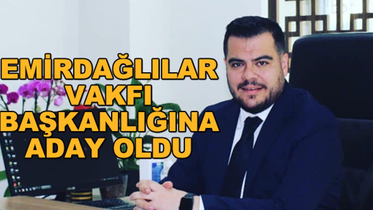 Emirdağlılar Vakfı Genel Kurulu öncesinde flaş gelişme yaşandı. Vakıf Başkanı Hasan Murat Kahya'nın "ortak ve tek aday" çağrısı sonrasında, Hasan Murat Kahya yaptığı açıklamada, adayları olarak Eskişehir 112 Acil Servis Başhekimi Dr. Veli Görkem Pala'yı belirlediklerini duyurdu... Veli Görkem Pala da yaptığı açıklamada, "Hedefimiz; bir ve beraber olmak. Bize duyulan bu güveni boşa çıkarmamak en büyük sorumluluğumuz olacak" diyerek adaylığını açıkladı.