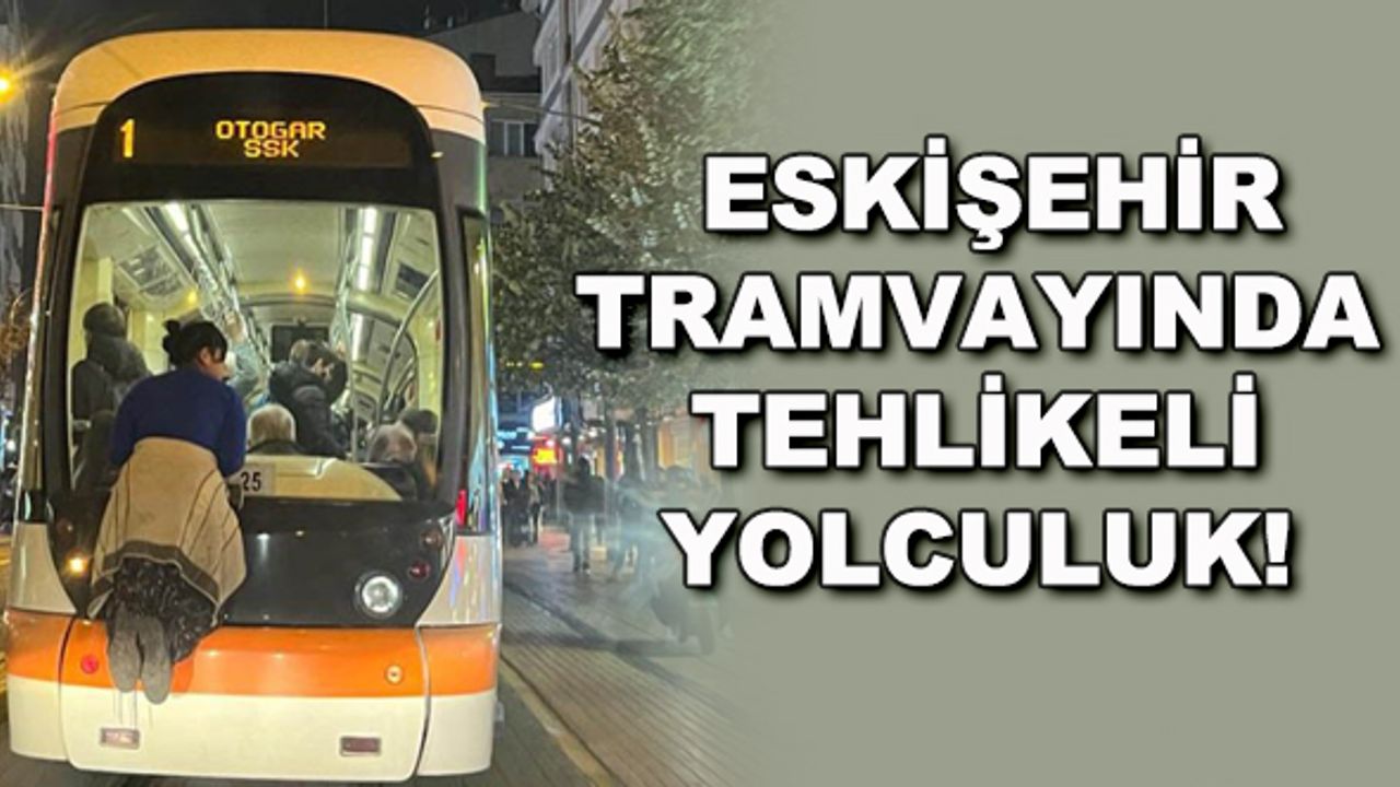 Eskişehir’de bir tramvayın arkasına tutunarak yolculuk eden çocuk yürekleri ağza getirdi.