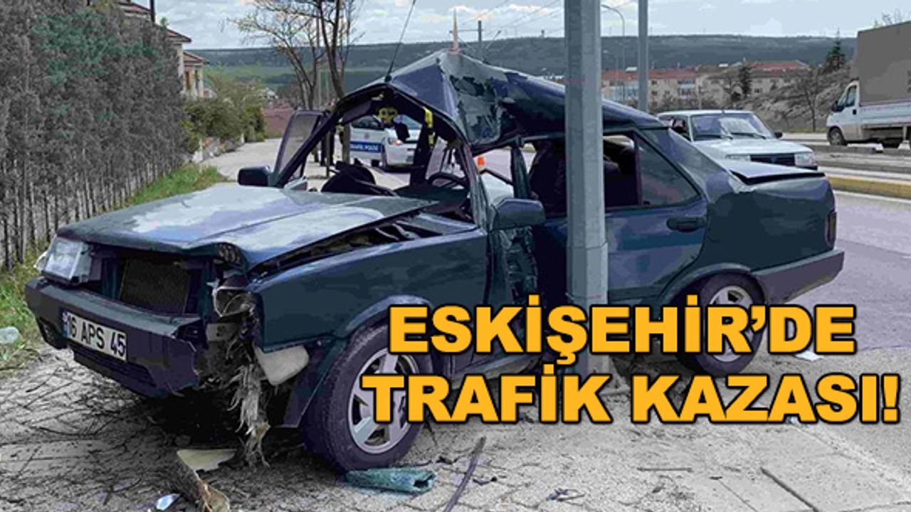 Eskişehir’de sürücünün direksiyon hakimiyetini kaybetmesi sonucu kontrolden çıkan ağaca ve aydınlatma direğine çarparak durabildi.