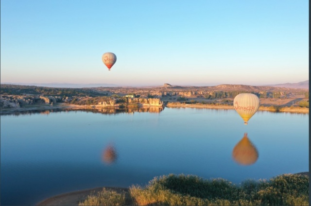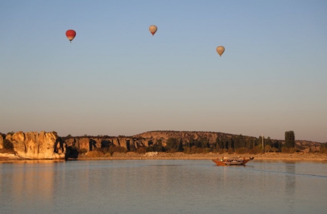 Afyonkarahisar'da Emre Gölü'nde sıcak balon seferleri yoğun ilgiyle devam ederken, Afyonkarahisarlı yöneticiler yine balon turuna çıktı...