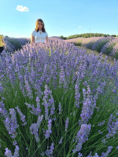Turist Betül Özdemir, İdris köyüne lavanta tarlarını görmek için arkadaşlarıyla geldiklerini söyledi.
