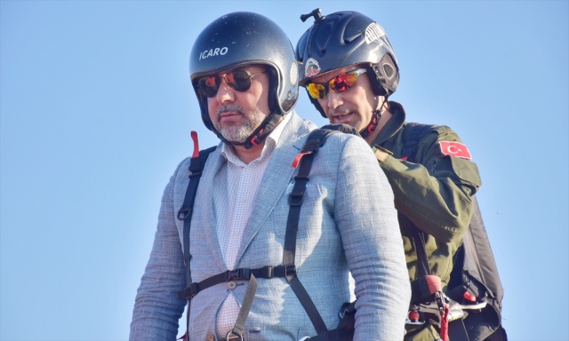 Yapılan incelemenin ardından Kasapoğlu ve beraberindekiler, 45 dakikalık başarılı bir yamaç paraşütü uçuşu gerçekleştirdi.
