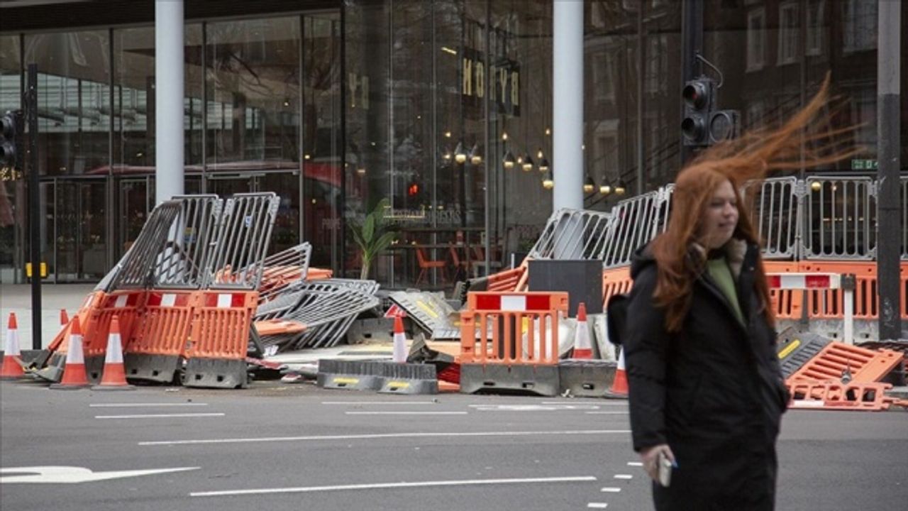 Başkent Londra'da fırtına nedeniyle vatandaşlar yolda yürümekte zorluk çekerken, bazı şehirlerde ağaçlar yol kenarlarına devrildi.