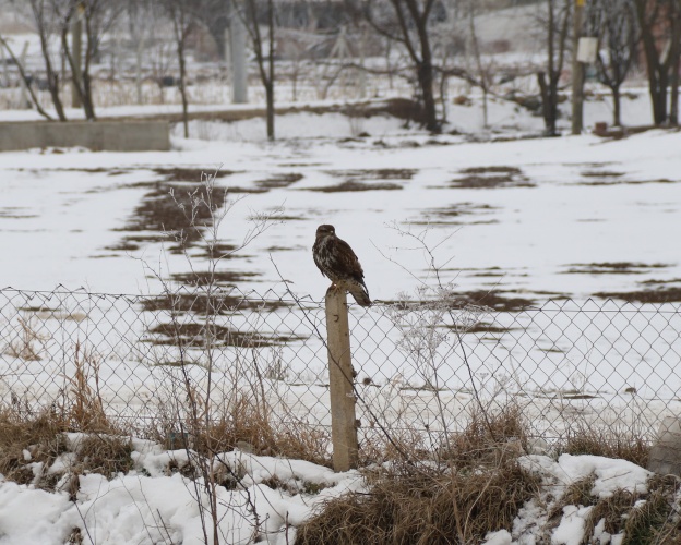 Ayrıca soğuktan etkilenerek yerleşim yerleri yakınlarındaki çitin üstüne konan bir şahin de objektiflere yansıdı.