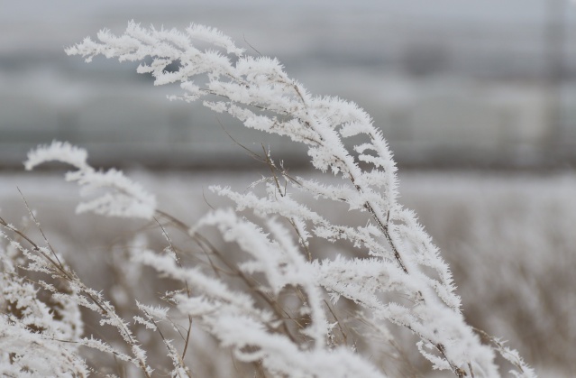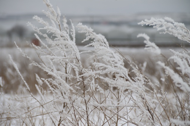 Kırsaldaki toprak yolların kenarında bulunan otların üzerindeki buz kristalleri görsel şölen oluşturdu.