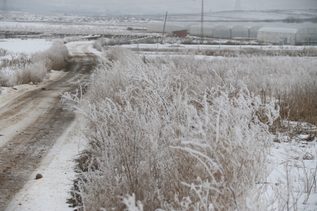 Kentin özellikle kırsal bölgelerinde daha fazla hissedilen soğuk hava nedeniyle beyaza sürünen bitkiler dahi buz kesti.