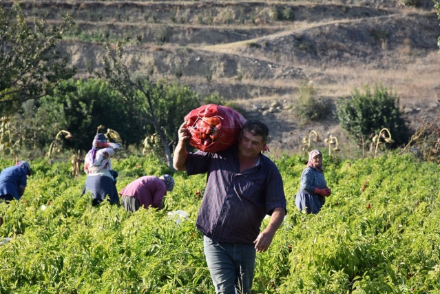 Kırmızı biber üreticisi Nevzat Güneş, biber hasadıyla birlikte hummalı bir çalışma sürdürdüklerini ifade etti.