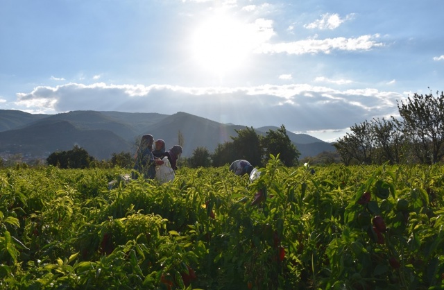 Geçen yıl elde ettikleri fideleri mayıs ayında toprakla buluşturan, kasım ve aralık aylarında da hasat yapan üreticiler, kırmızı biberleri, açık alanda sererek veya kendi imkanlarıyla yaptıkları fırınlarda kurutuyor.
