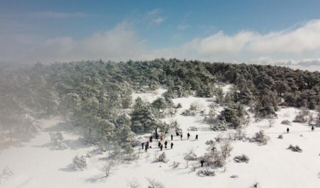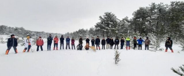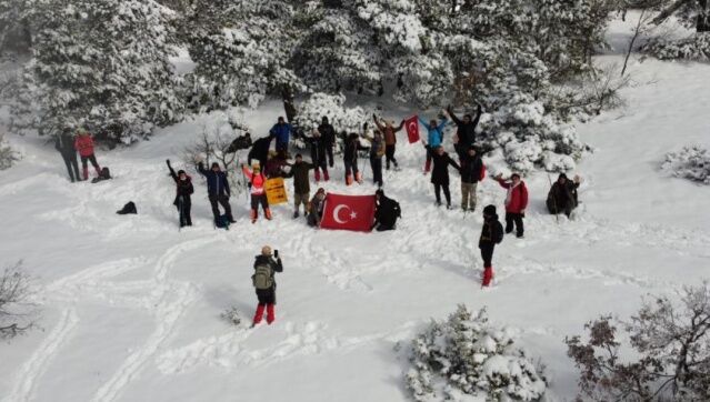 Bu kapsamda ESDAG 25 katılımcı ile beraber oldukça soğuk ve kar yağışlı bir havada bin 300 rakımlı Bozdağ’da 10 kilometrelik (km) zorlu parkurda yürüyüş gerçekleşti.