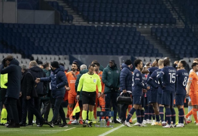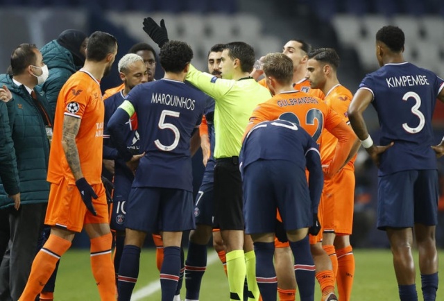 Paris Saint-Germain - Medipol Başakşehir maçının dördüncü hakemi Constantin Sebastian Coltescu'nun, Okan Buruk'un Yardımcı Antrenörü Pierre Webo'ya ırkçı ifade kullanması nedeniyle iki takım da sahadan çekildi.