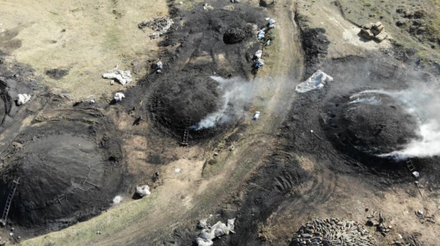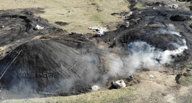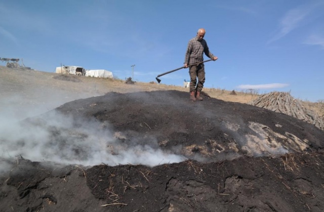 Sonrasında ise her tarafı toprak ve saman ile kaplanan odunlar, üst taraftan verilen ateş sayesinde 15-30 gün arasında içten içe yanıyor.