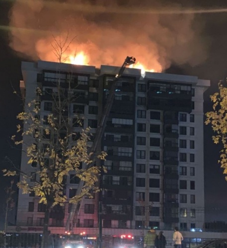 Apartman sakinlerinin iddiasına göre yangın, hakkında şikayetler olduğu için kısa süre önce işten çıkarılan kapıcı tarafından alevlendi. Olay yerine çok sayıda itfaiye ekibi sevk edildi.