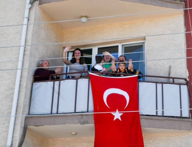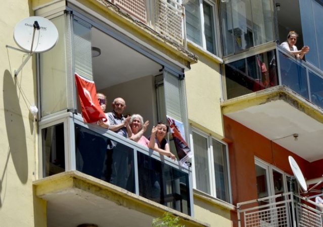 Eskişehir'de dolaşan otobüsten çalınan marşlar Eskişehirlileri balkonlara döktü.
