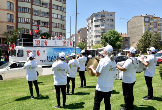 Tepebaşı Belediyesi'nin otobüsüne bando da eşlik etti.