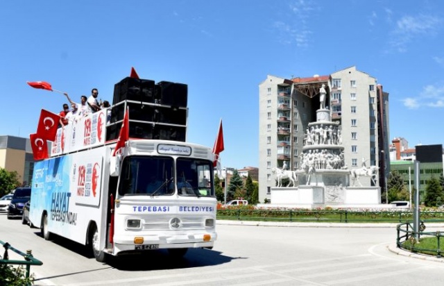 Gün boyunca şehirde dolaşan Tepebaşı Belediyesi araçlarından yayınlanan marşlar da vatandaşların coşkusuna coşku kattı.