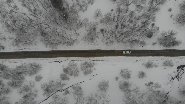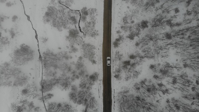 Beyaz gelinliğini giyen ağaçlar, sabah saatlerinde sisin de etkisini göstermesiyle birlikte görsel şölen oluşturdu.