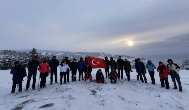 Eskişehir Doğa Aktiviteleri Grubu (ESDAG) üyeleri, kar yağışı sonrası beyaza bürünen şehrin en yüksek noktalarından Bozdağ’ın zirvesine çıktı.