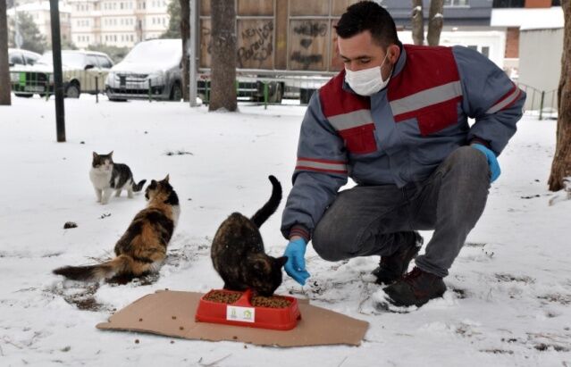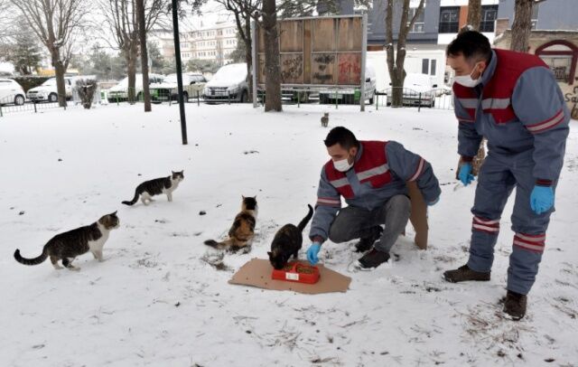 Öte yandan Tepebaşı Belediyesi, kış şartlarının etkisini artırdığı bugünlerde, sokaklarda yiyecek bulmakta güçlük çeken hayvanlara sağladığı mama desteğini aksatmıyor.