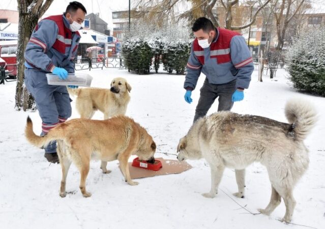 Koronavirüs ile mücadele kapsamında hafta sonlarında vatandaşların evlerinden çıkmaması ile birlikte yiyecek bulmakta zorlanan hayvanlar, Tepebaşı Belediyesi Veteriner İşleri Müdürlüğü ekipleri tarafından besleniyor.