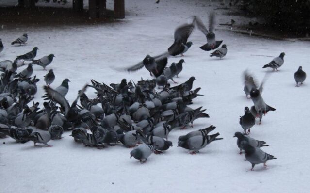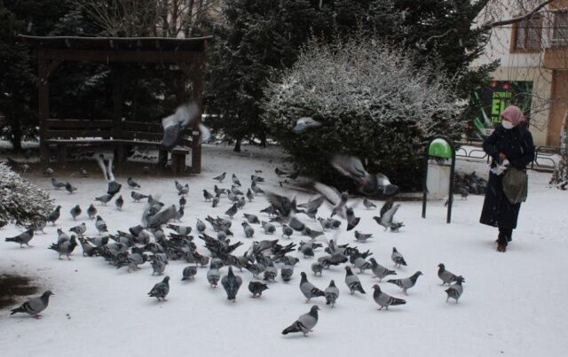Market alışverişi sonrası güvercinleri besleyen duyarlı bir vatandaş sokak hayvanlarının ihtiyaçlarını karşıladı.