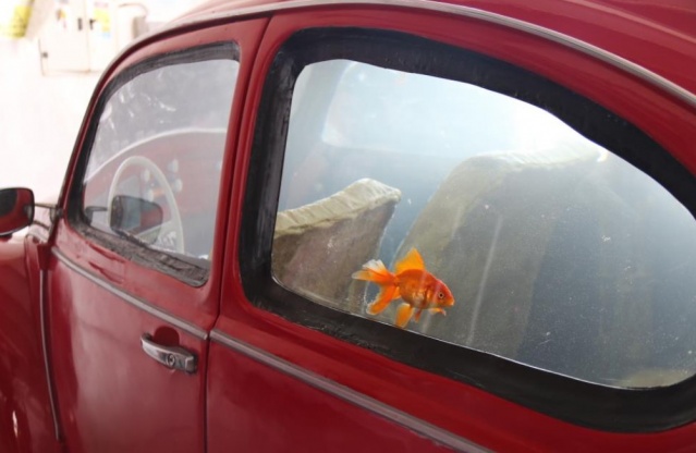 Eskişehir’de akvaryum ve hayvanat bahçesi dekorasyonlarında kullanılan ürünler tasarlayan bir firma, 1969 model Vosvos marka otomobili akvaryuma çevirerek farklı bir tasarıma imza attı.