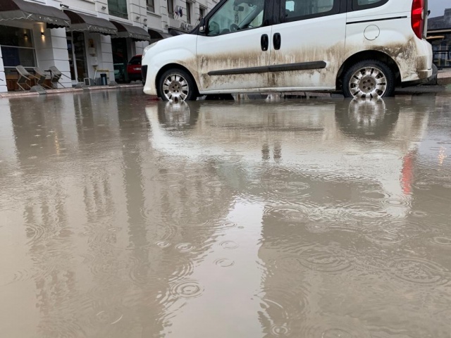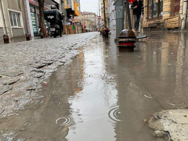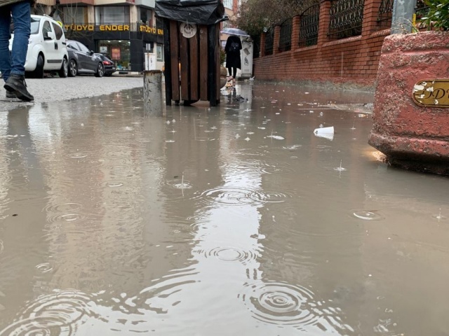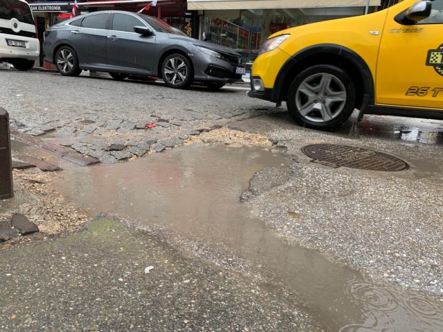 Ana yolların ve kaldırım kenarlarında bulunan çukurların su dolması, kaldırımda yürüyen vatandaşlara zorlu anlar yaşattı.