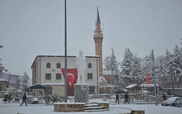 İnönü'de kar yağışı bu şekilde görüntülendi.