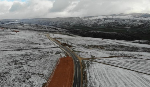 Beyaz örtüyle kaplanan Hekimdağ Geçidi drone ile havadan görüntülendi.