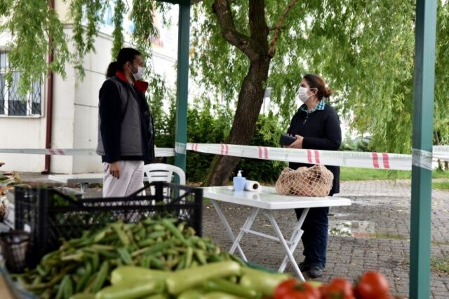 Kadın Üretici Ürün Satış Noktası ve Ekolojik Pazar; hijyen, sosyal mesafe, maske kullanımı gibi koronavirüs önlemleri eşliğinde hizmet veriyor.