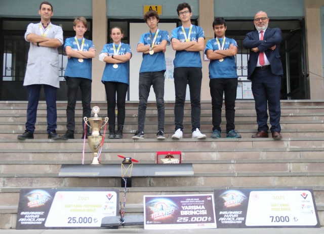 İlhami Can, "Ekibimiz, 750 takım içerisinden ön rapor aşamasını geçerek maddi destek kazandılar. Sonra hazırlıklarını atölyemizde tamamladılar. Son aşamada Bursa’da yapılan TEKNOFEST yarışmasına İnsansız Hava Aracı Sabit Kanat yarışmasına çağrıldık. Burada 57 takımla mücadele ederek 2 görevi tamamladık. Sonrasında okulumuz otonom şekilde sabit kanadı uçurarak birincilik elde etti” ifadelerini kullandı.