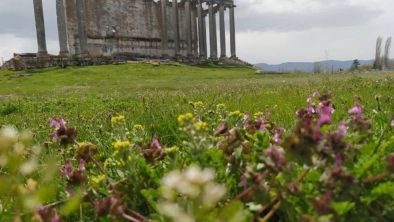 Eskişehir'e yaklaşık 2 saatlik mesafede olan, Kütahya'nın Çavdarhisar ilçesindeki Aizanoi Antik Kenti, ilkbahar manzaralarıyla ayrı bir güzelliğe büründü.