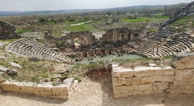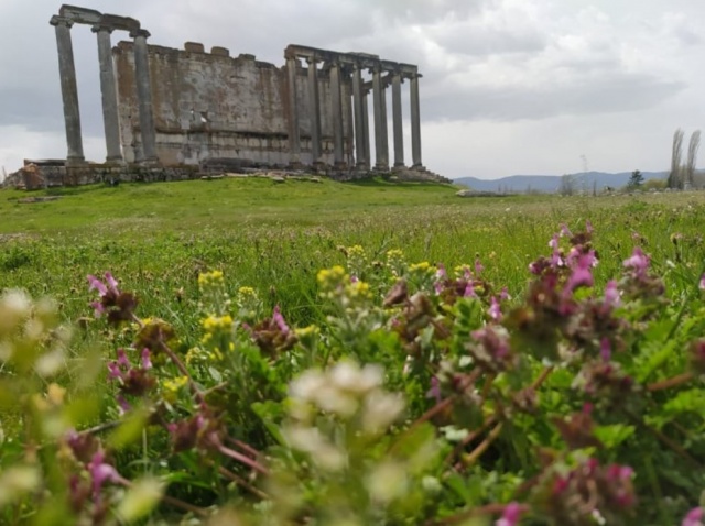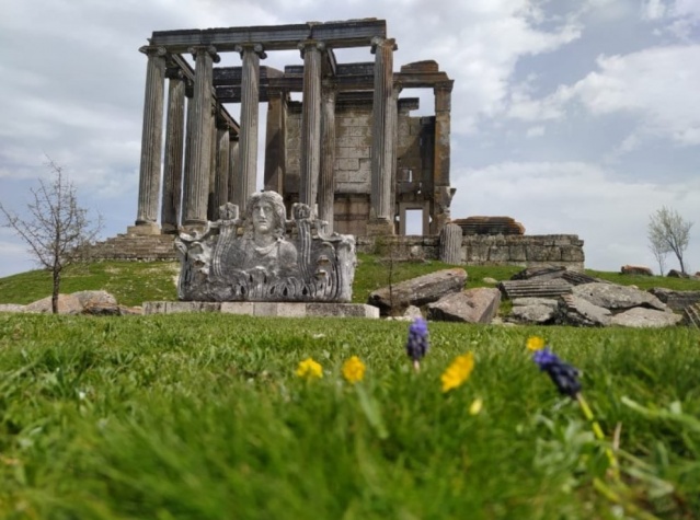 Antik kentteki Zeus Tapınağı, 15 bin kişi kapasiteli amfi tiyatro ile tiyatroya bitişik nizamda yapılmış 13 bin 500 kişilik stadyum, ilkbaharın yaşandığı bugünlerde yemyeşil düzlükte ziyaretçilerini tarihte yolculuğa çıkarıyor.
