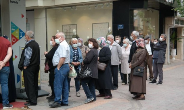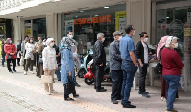 Birçok taksitli satış yapan işyerinin, telekomünikasyon firması bayilerinin, fatura ödeme yerleri ile bankaların önünde uzun kuyruklar oluşurken, pek de korunamayan sosyal mesafe yetersizliği ise tedirginlik yaşattı.