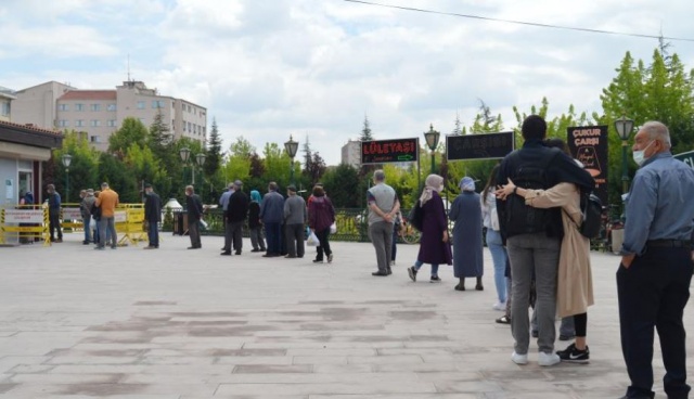 Eskişehirliler tam kapanmanın ardından kuyruklara dizildi... Şehrin birçok noktasında uzun kuyruklar oluştu.