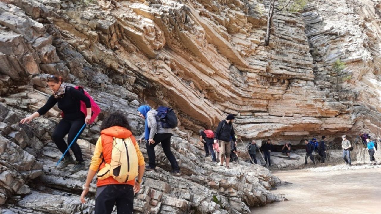 Eskişehirli doğa tutkunları seyrine doyumsuz manzarasıyla ünlü Harmankaya ve Koyunlu kanyonlarında 17 kilometrelik yürüyüş yaptı.