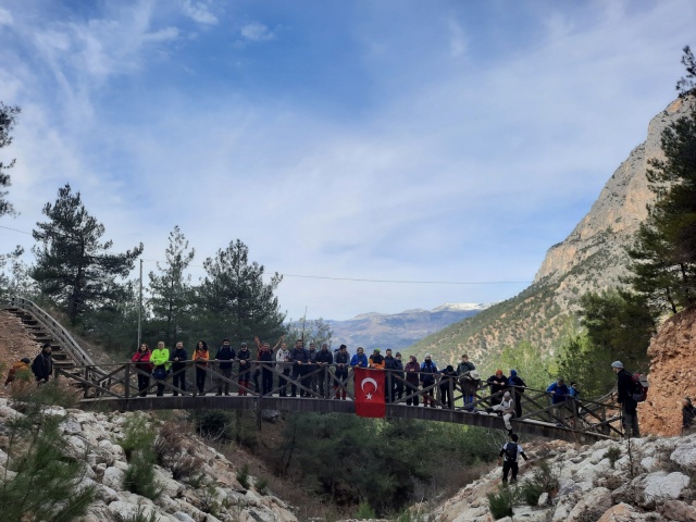 Yürüyüşte yer alan 50 katılımcı, kanyonların kendine hayran bırakan manzarasında keyifli vakit geçirdi.