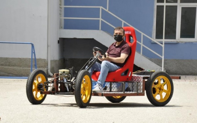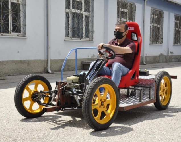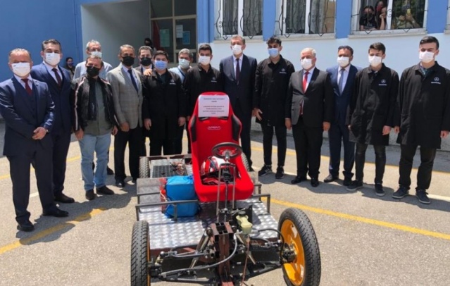 Motorlu Araçlar Teknolojisi Bölümü öğretmenleri ve öğrencilerinin 4 aylık çalışmalarıyla çalışır haldeki iskelet araç oluşturuldu. Şase kısmında profil, gövde kısmında ise kompozit malzeme kullanılan araçta 60 volt, 3000 watt elektrikli motor kullanıldı.