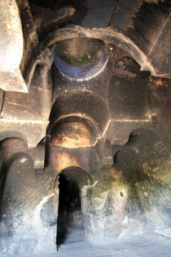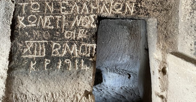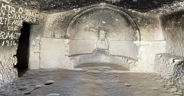 Yine bu kilisede Eski Roma harfleri ile yazılmış Hz. Meryem ve iki adet haç işareti görmek mümkündür.