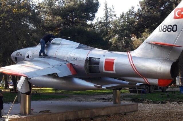 Uludağ Üniversitesinde hatıra uçağı olarak teşhir edilen RF 84 uçağını restore edince bunun bakıma ihtiyacı olduğunu gördük. Ekibimizle bir araya gelerek uçağı restore ederek ilk günkü ihtişamına kavuşturduk. Restorasyonda uçağın tüm yenileme işlemlerini aslına uygun yaptık.
