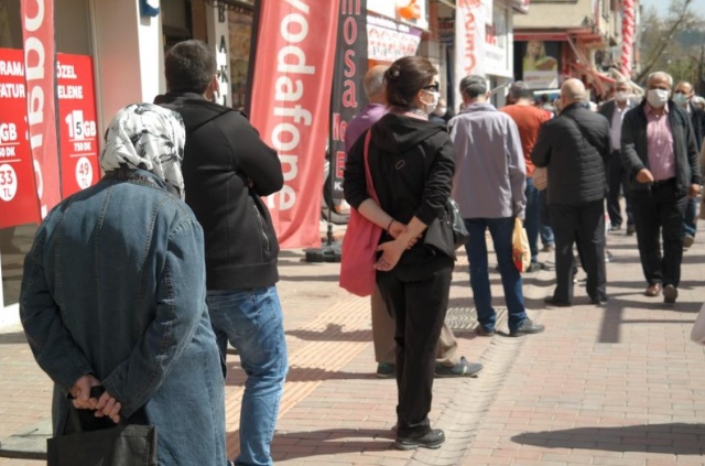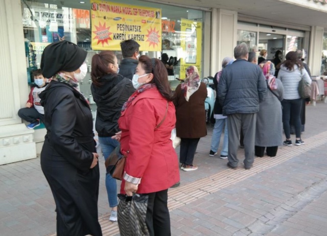 Mağazalar önünde oluşan uzun kuyruklar sosyal mesafe açısından tedirgin ediyor. Sosyal mesafe, maske ve hijyen kurallarına dikkat edilmesi konusunda vatandaşlar uyarılıyor.