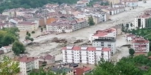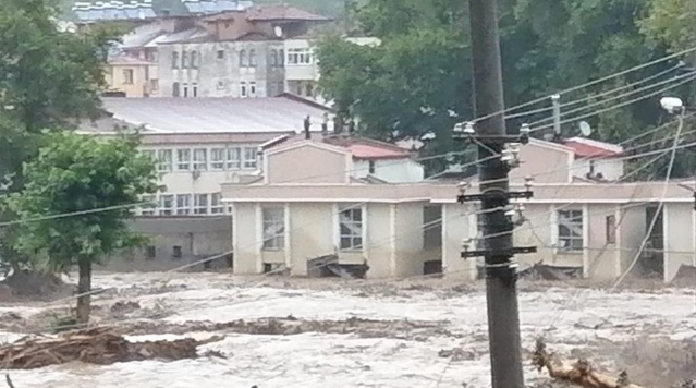 Kastamonu’da etkili olan kuvvetli sağanak yağış sebebi ile birçok ilçe ve köy merkezi sular altında kaldı, dereler taştı. Dehşeti yaşayan vatandaşlar ise sel sularına kapılmamak için binaların çatılarına çıktı.