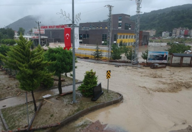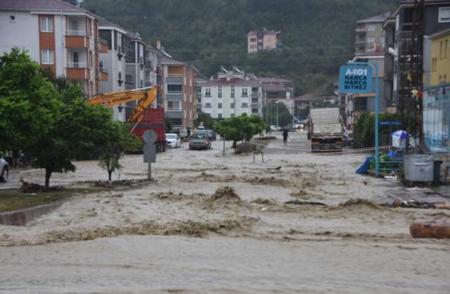 Kastamonu’da dün akşam saatlerinden itibaren etkili olan sağanak yağış sebebiyle birçok ilçede sel baskınları yaşandı. Devam eden yağışın etkili olduğu Bozkurt ilçesinde bazı köyler sular altında kalırken, Ezine çayından taşan sel suları ise kent merkezini sular altında bıraktı.